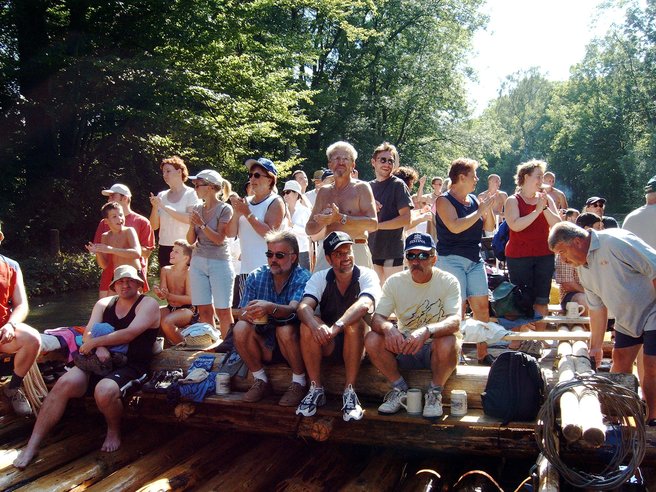 Unter der gekonnten musikalischen Umrahmung von Bernd Wohlgemuth und Frank Pflästerer am Schlagzeug, sowie Georg Pflästerer und Thomas Loser am Accordeon folgten nun 7 abwechslungsreiche Stunden. Die „Voll“-versorgung auf dem Floss lies weder Hunger noch Durst aufkommen. Die „Wasserratten“ kamen auch voll auf ihre Kosten, denn an den meisten Stellen ist das Schwimmen in der Isar erlaubt.